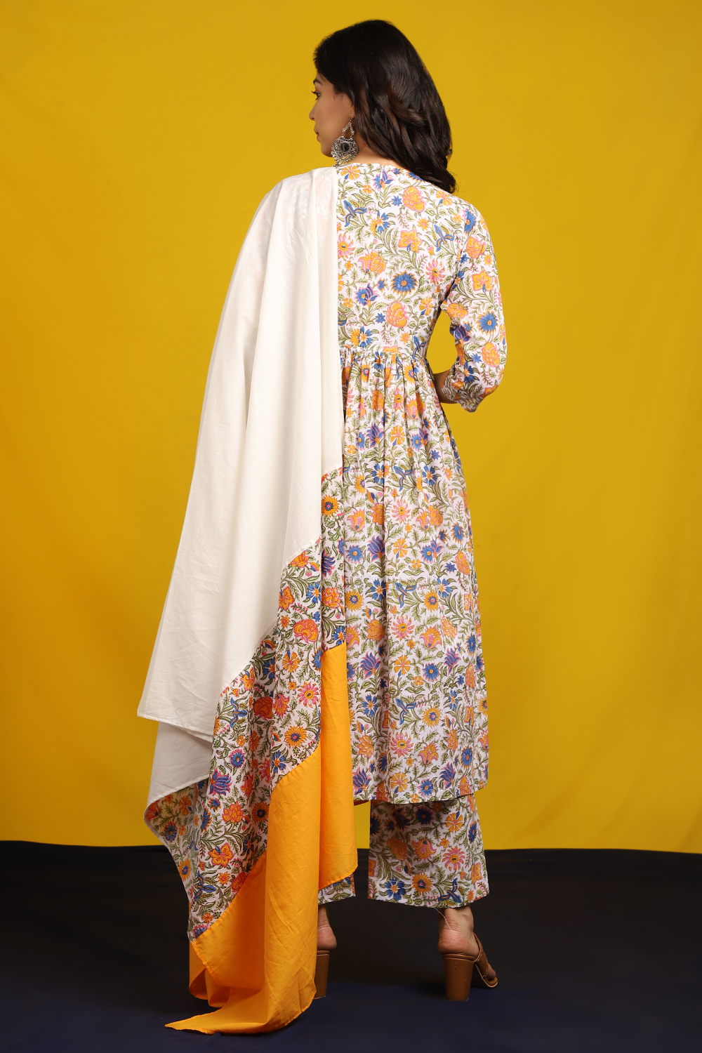 Featuring a three paneled cotton dupatta is perfect for any festive look. Gently hand wash separately in cold water. Do not soak & scrub. Dry in shade.