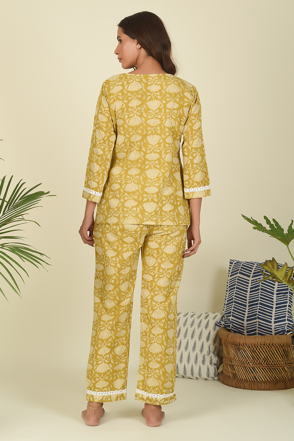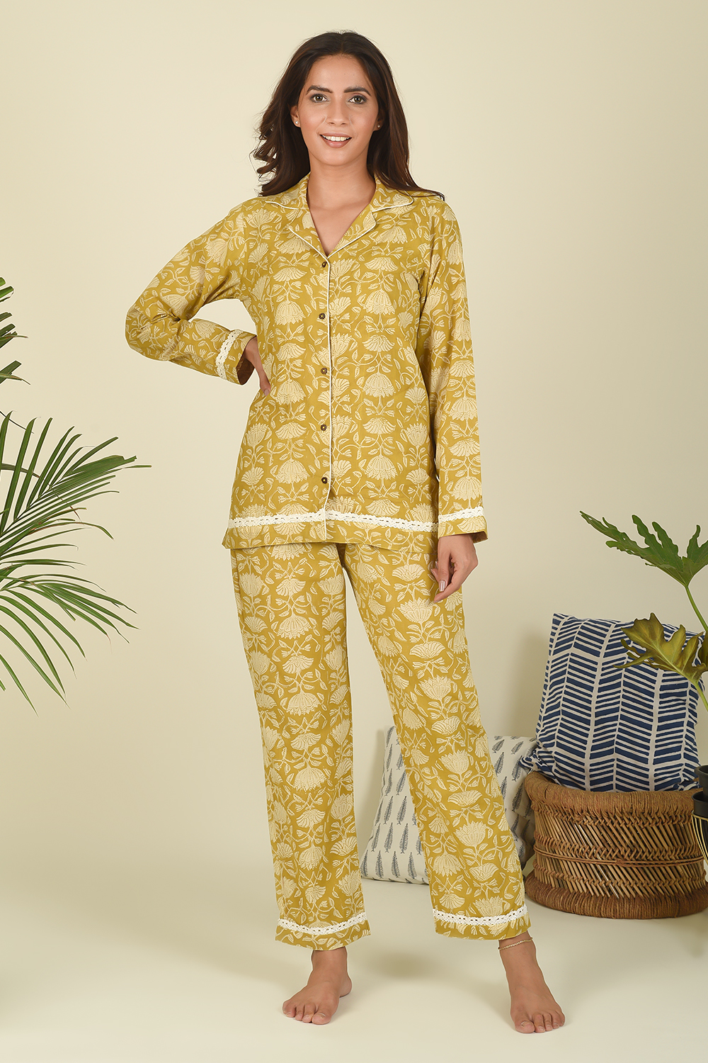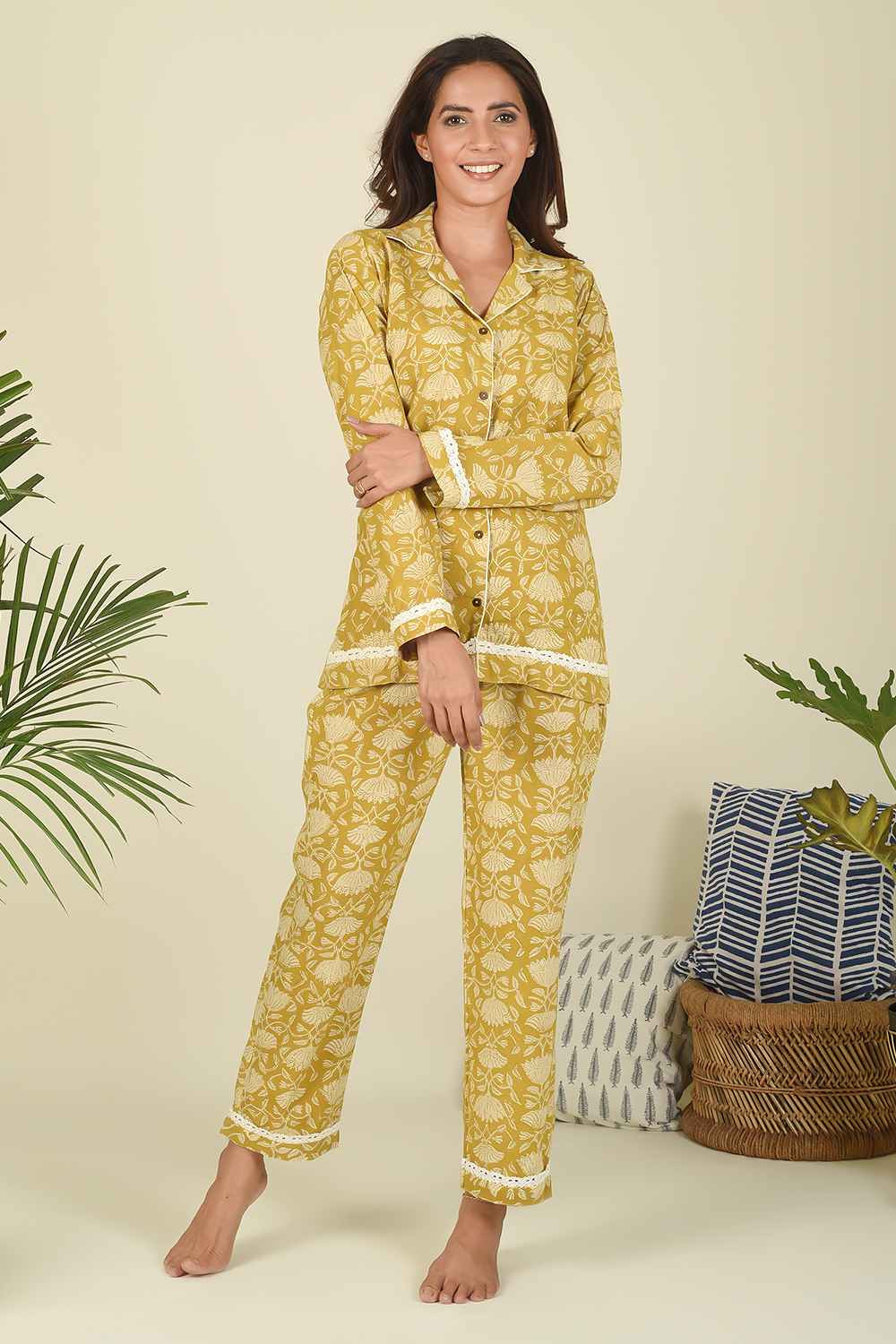 L: BUST- 38", WAIST- 32", SLEEVE- 16", TOP- 26", HIP- 40", PYJAMA- 36"