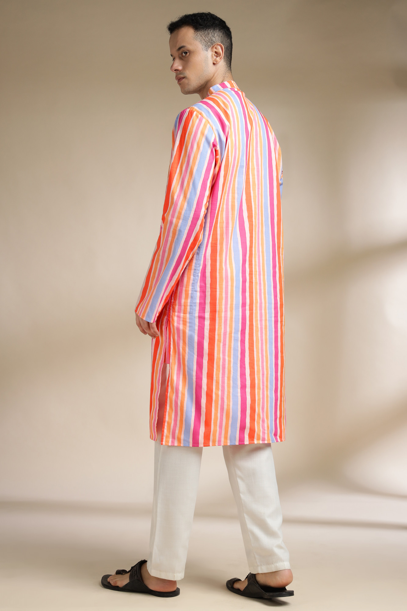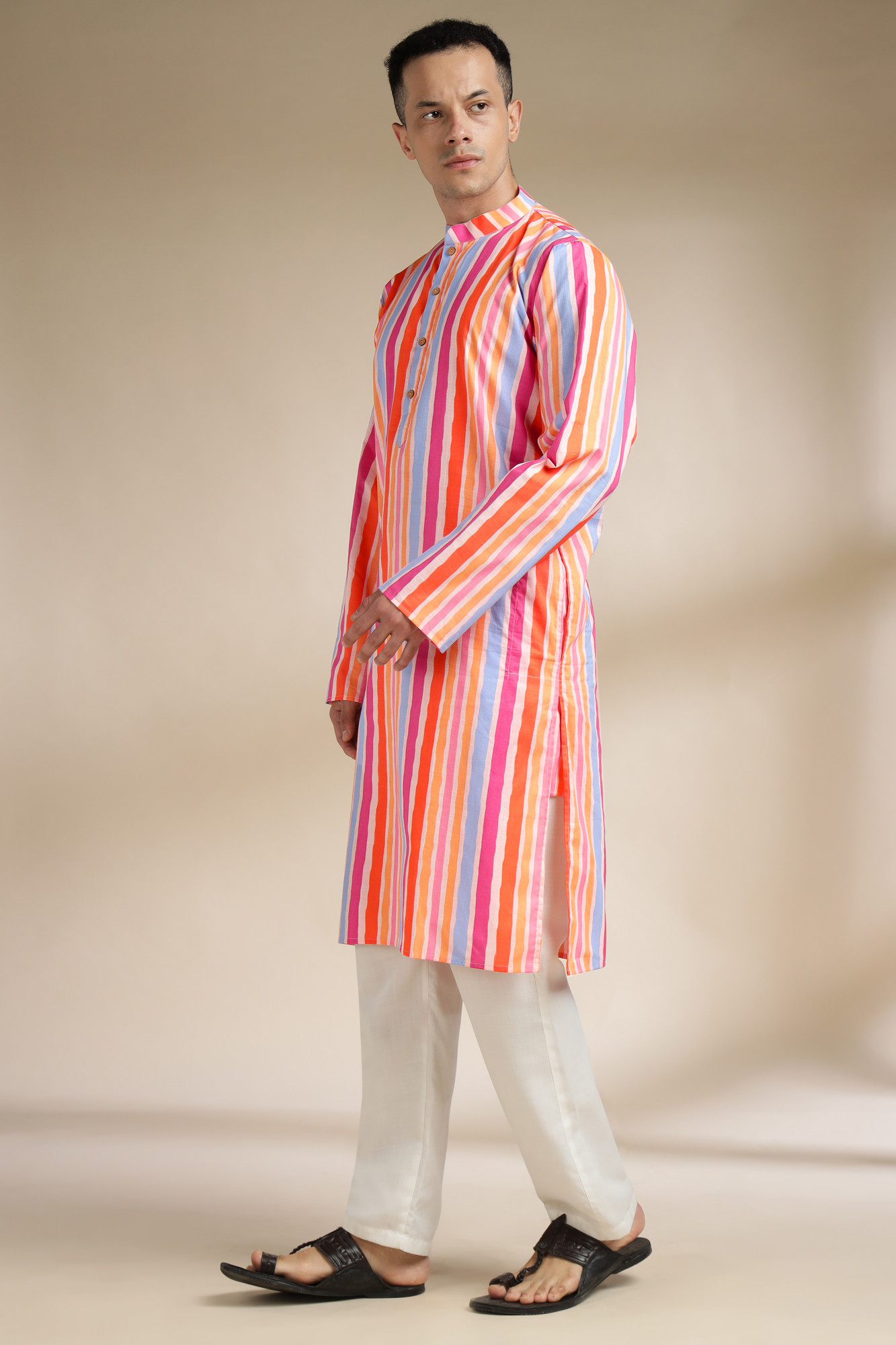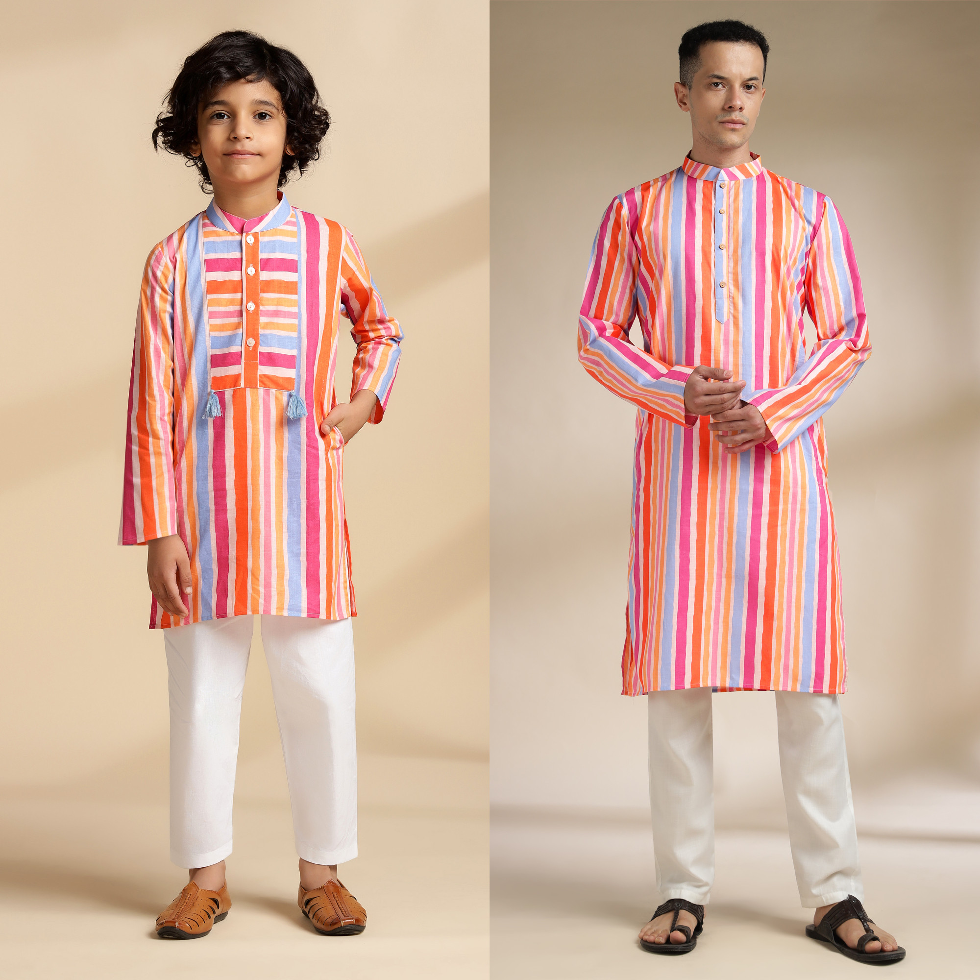 Boy's kurta set of 2: Front button closure kurta with elasticated pants.