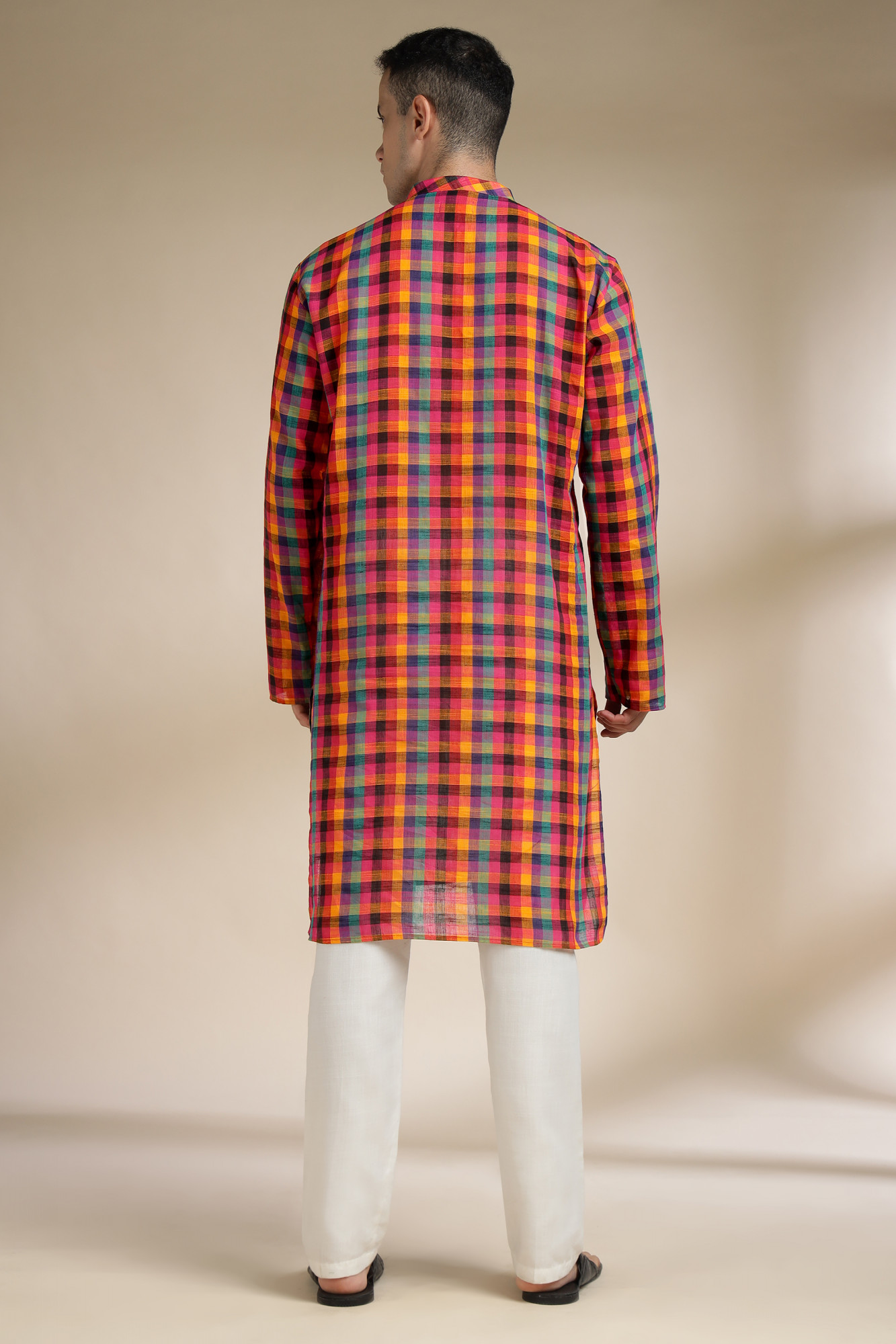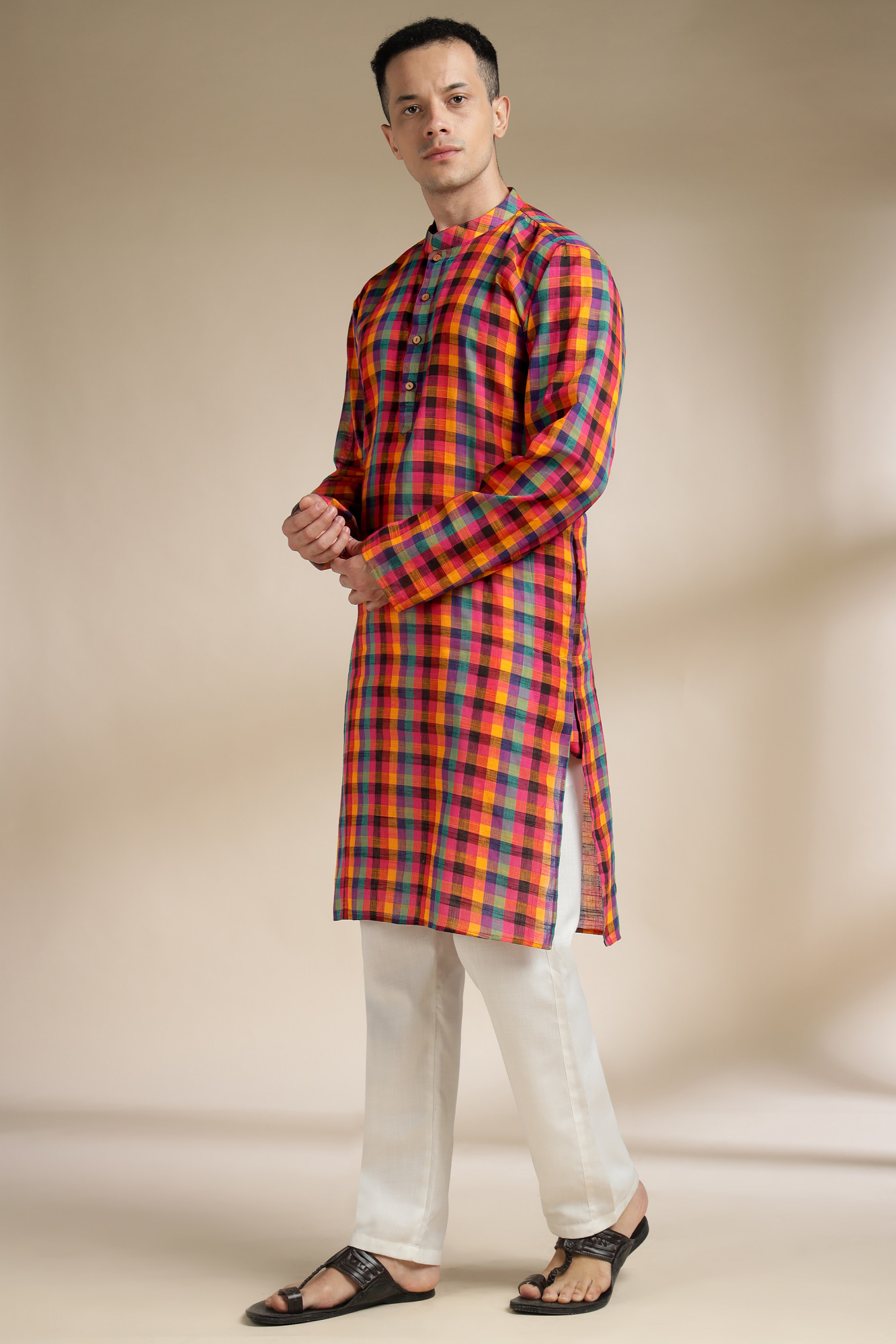 Dad's kurta: Slip-on kurta, with front buttons and band collar.