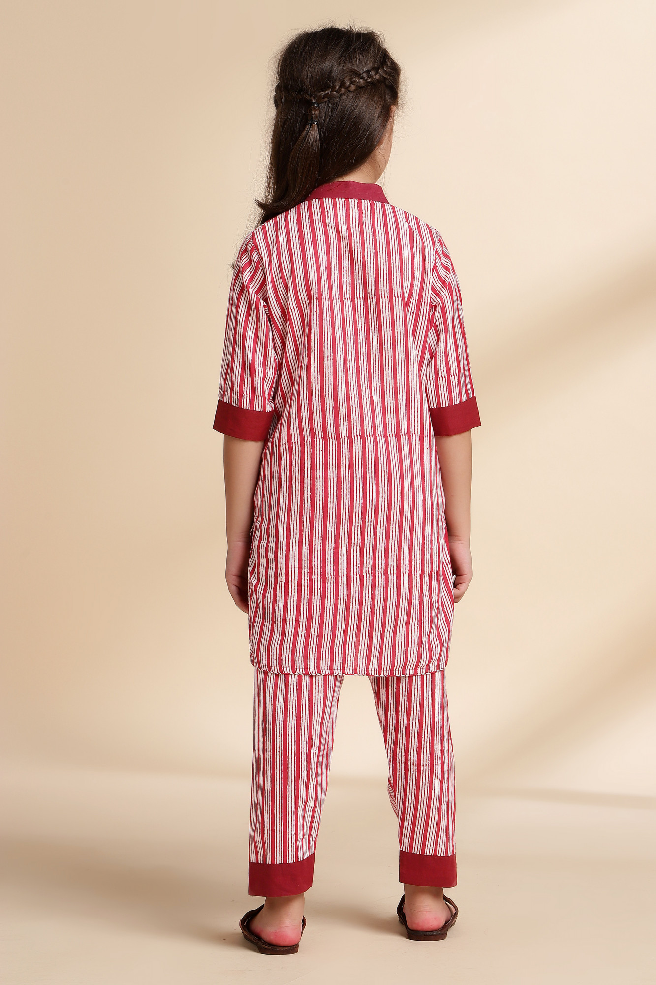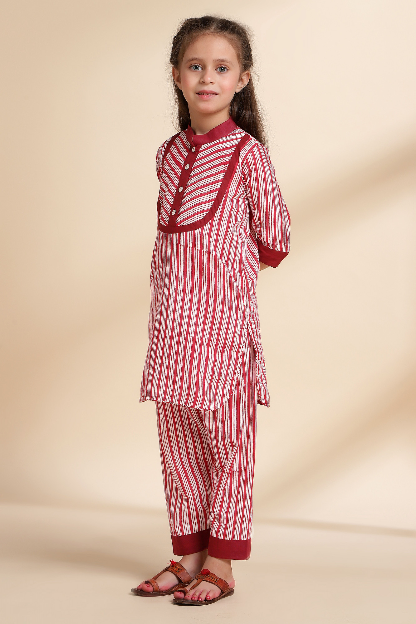 Girl's kurta set of 2: Front button closure in kurta & elasticated pants.